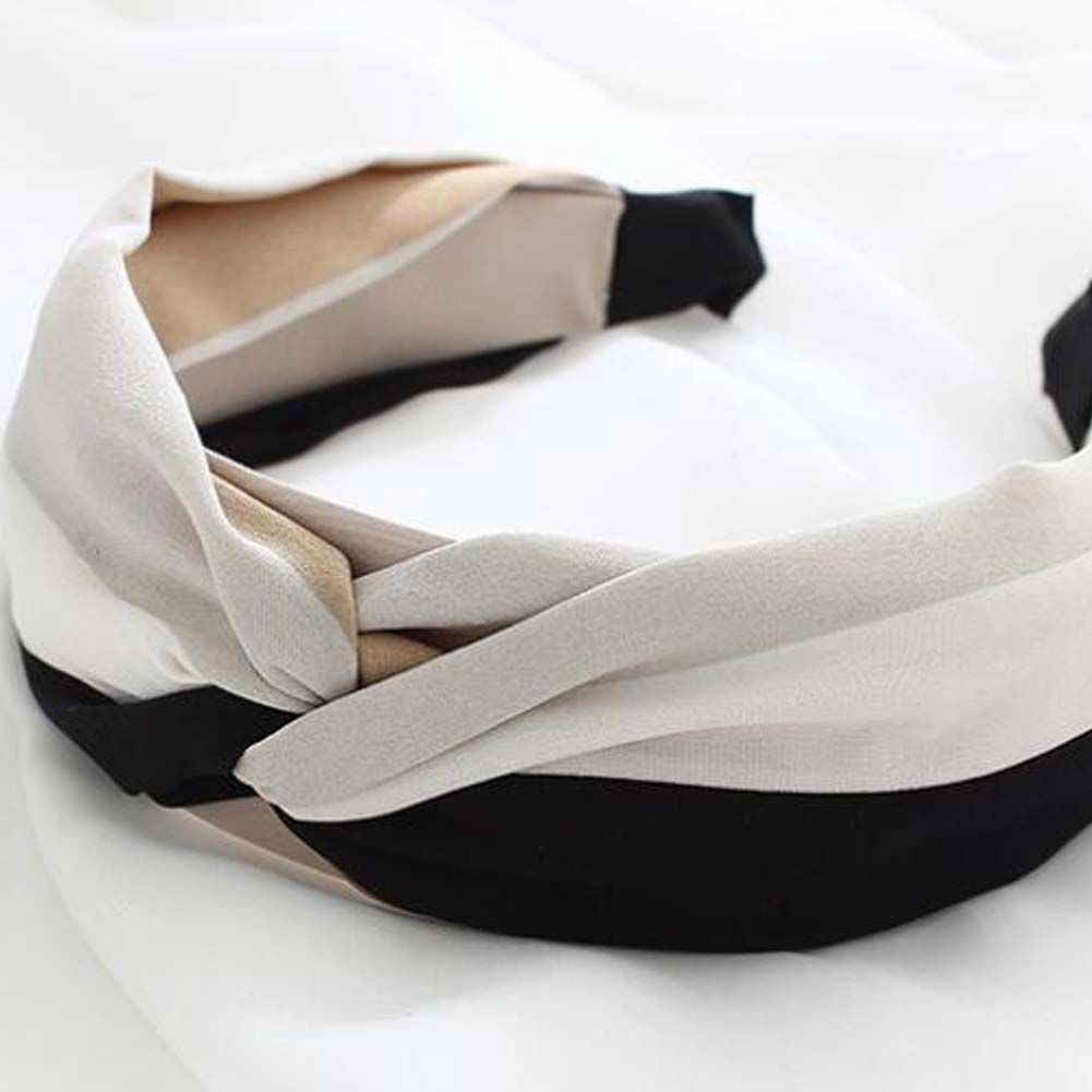 Womens Wide Headband Color Matching Turban Hairband Hair Accessorie, Black Grey WhiteWomens Wide Headband Color Matching Turban Hairband Hair Accessorie, Black Grey White